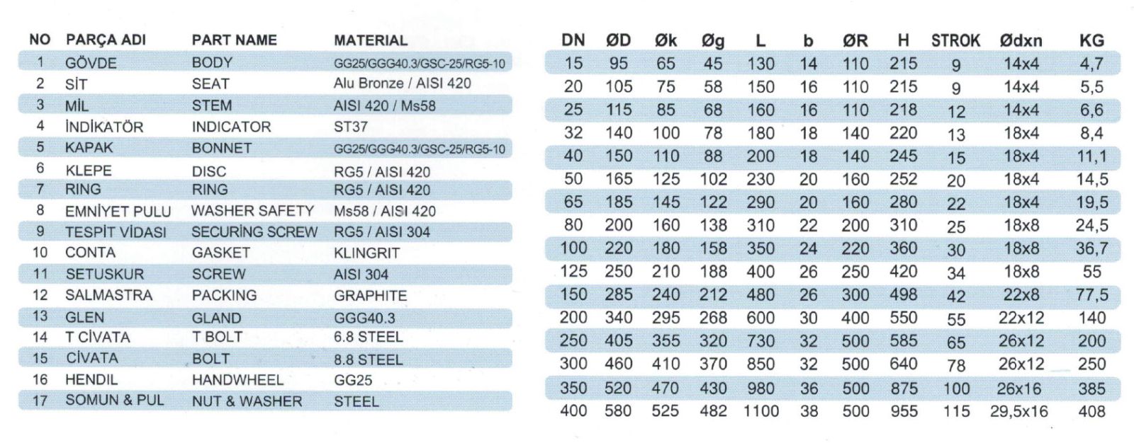 | Kullanım Alanları | Yağ ve 220C Kadar Buhar Devrelerinde, Deniz Suyu ve Tatlı Su |