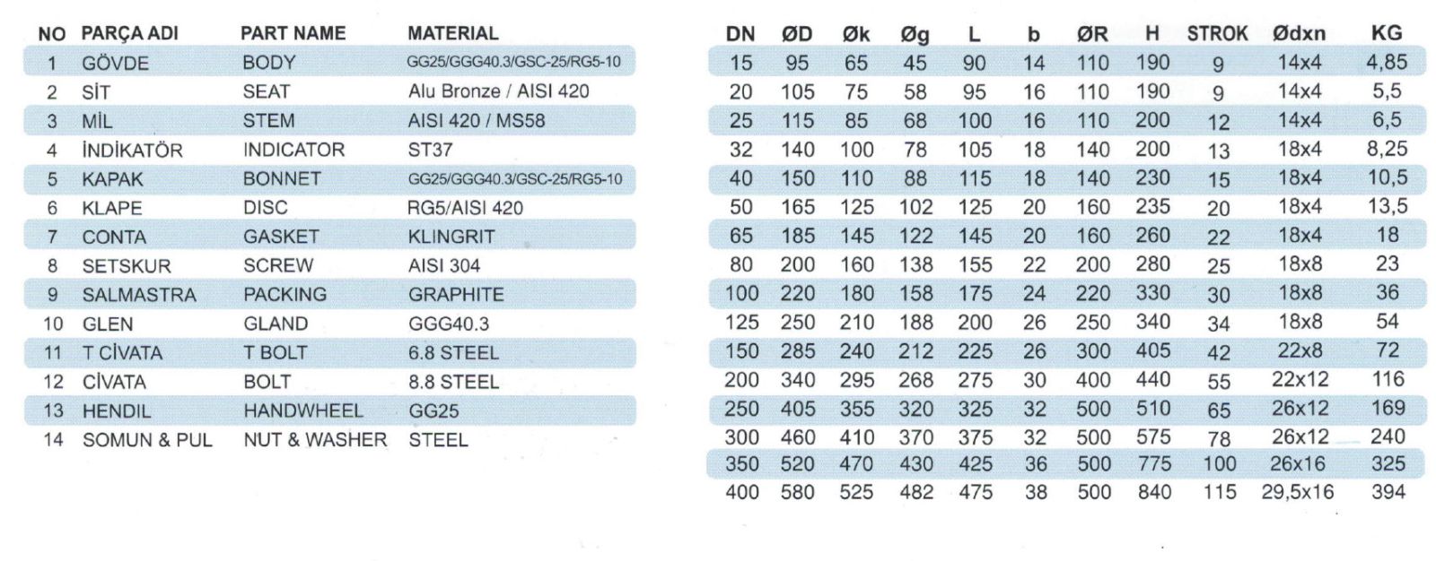 | Kullanım Alanları | Yağ ve 220C Kadar Buhar Devrelerinde, Deniz Suyu ve Tatlı Su |