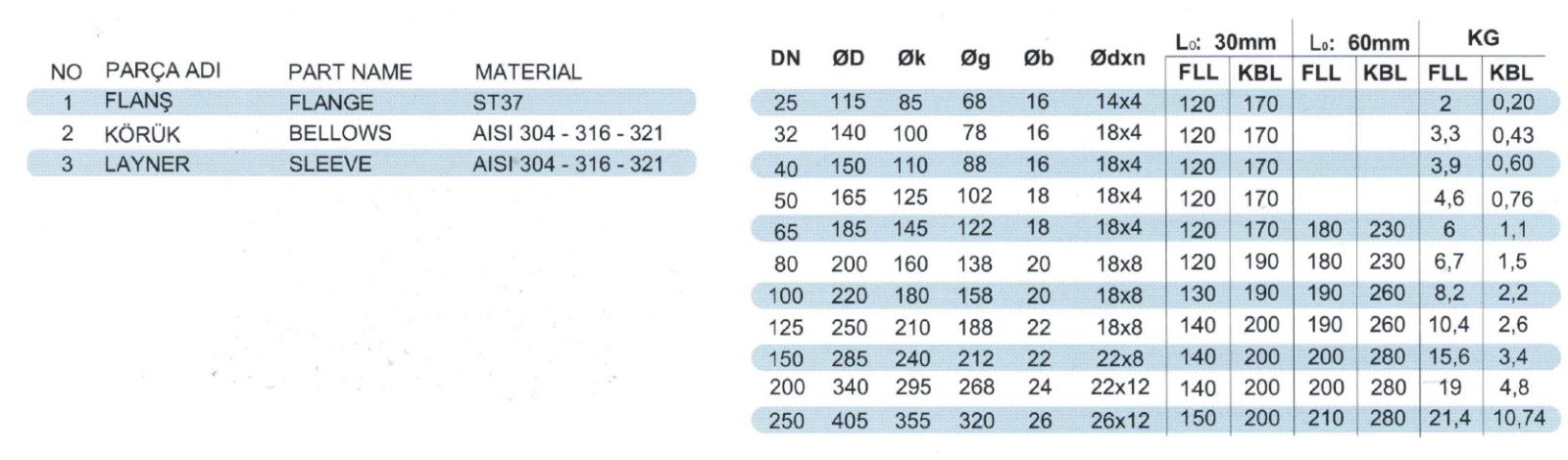 | Çalışma Basıncı | PN16 - PN25 - PN40 |