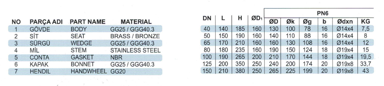 | Boyutlar | ENDS: DIN EN 1092-2 |