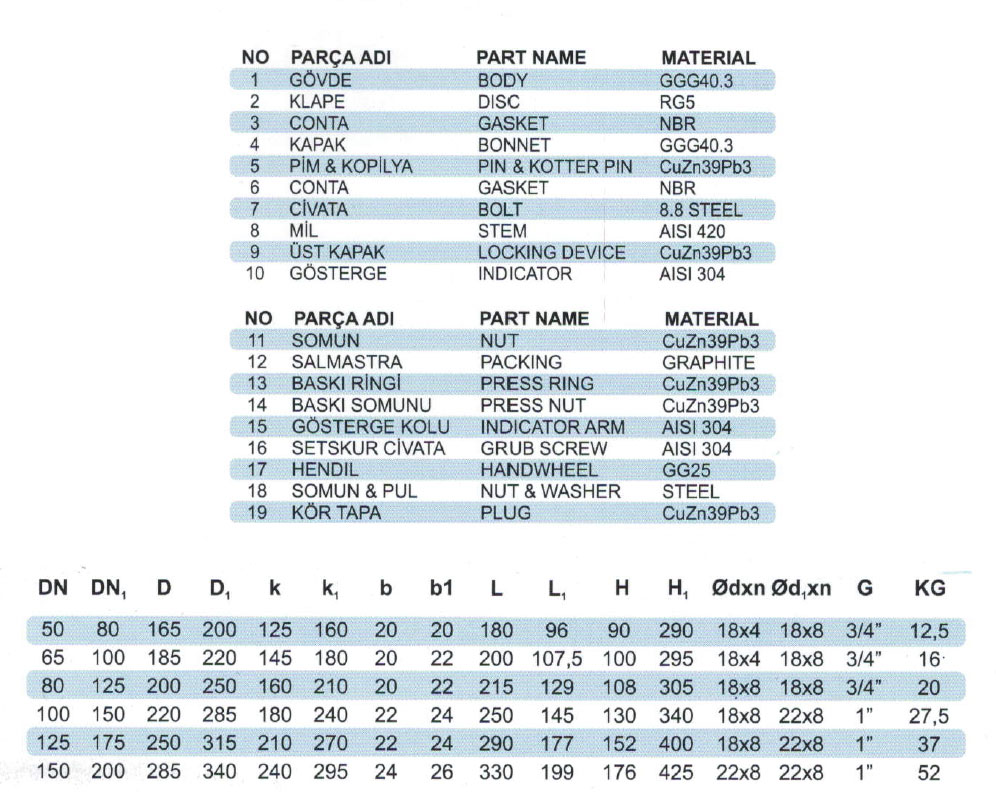 | Boyutlar | Flanş EN 1092-3 (DIN 2501) |
