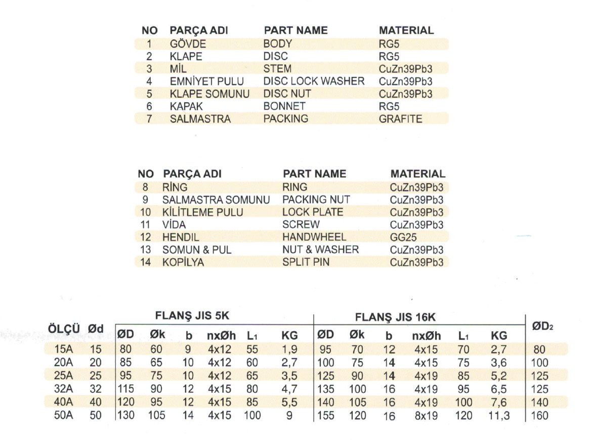 | Çalışma Basıncı | 10.5 / SEAT 7.7 kg / cm3 |
